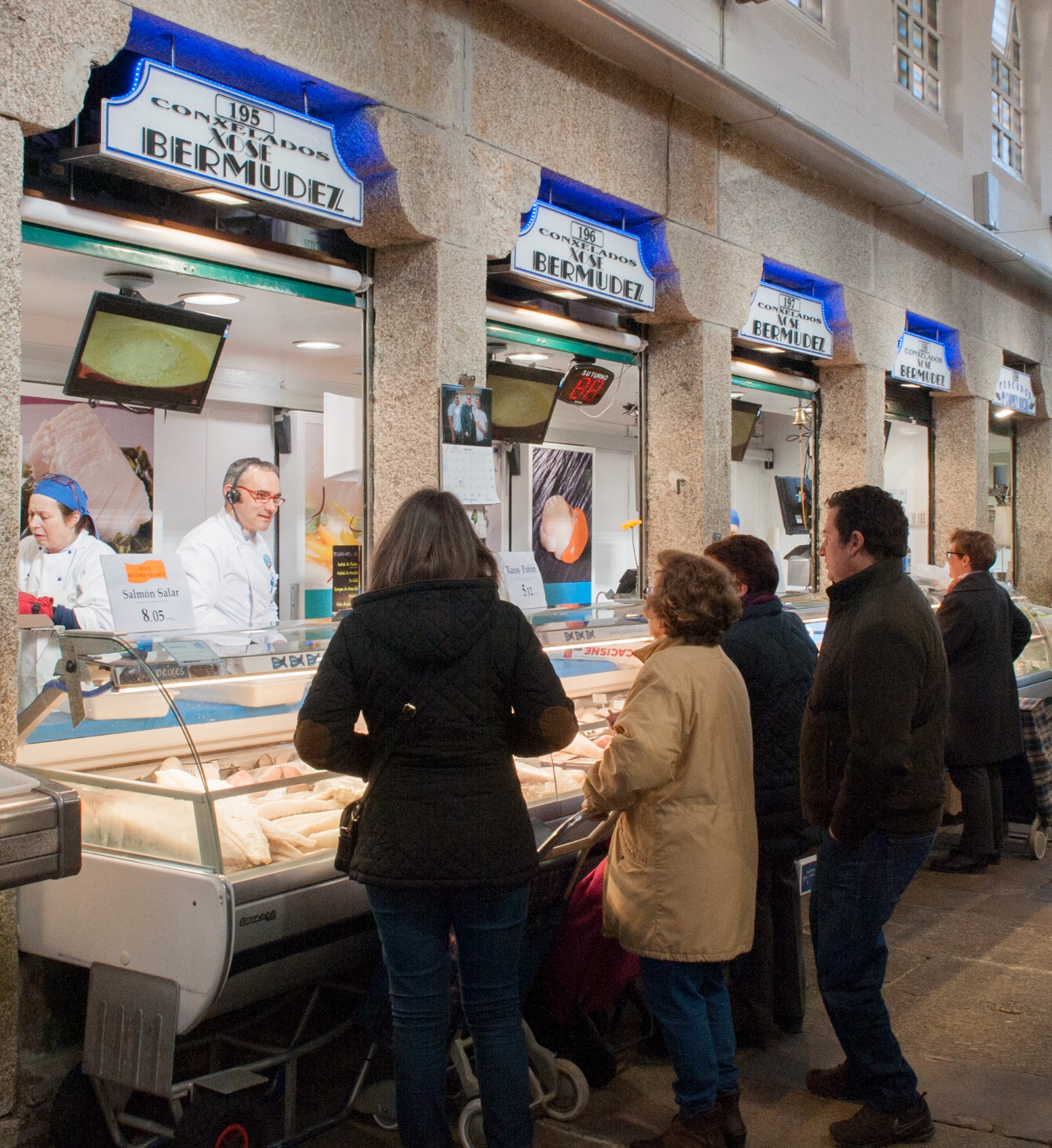 Recorriendo mercados y plazas, la venta de bacalao se realizaba de forma ambulante. Esto nos permitió conocer a clientes de todas partes, sus gustos y preferencias a la hora de escoger el mejor producto para su familia. Con el paso del tiempo, y con la incorporación de José Bermúdez hijo y su mujer Lela, el negocio da el salto a la plaza de Abastos de Santiago de Compostela, donde se asientan en los años 80.